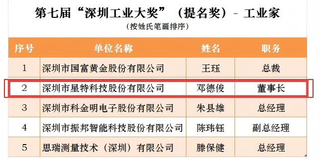 此次三(sān)喜臨門,是對(duì)星特科技全方位(wèi)實力的高度認可,更是深圳工業界對其深耕實業、銳意創新的重磅嘉獎。